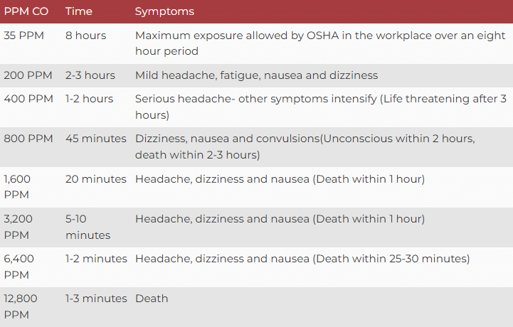 CO poisoning can have mild to severe effects, depending on the concentration and duration of exposure. Symptoms can include: